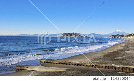 片瀬江ノ島 西浜・鵠沼海岸から観る富士山の夕景