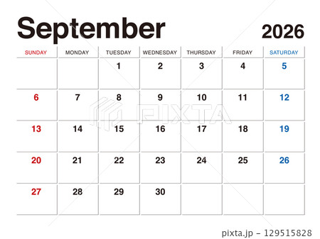 2026年9月の日曜始まりカレンダー 令和8年 カレンダー素材