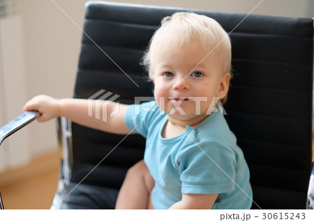 Baby boy with blue eyes indoor portrait