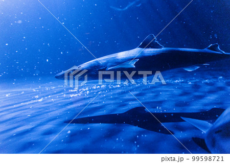 アクアマリンふくしまの水槽内を泳ぐサメ