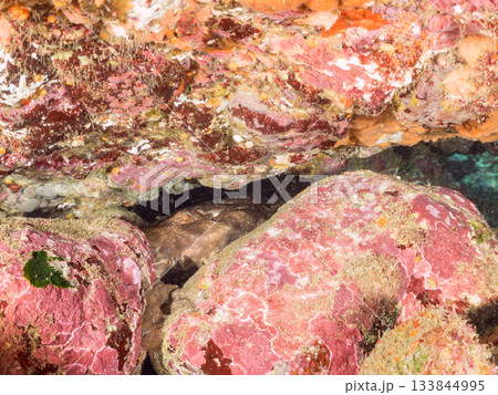 水中洞窟で寝る, 大きな美しいネコザメ(ネコザメ科)。ヒリゾ浜中木南伊豆町伊豆半島静岡県2024
