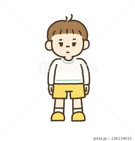 無表情で心を閉ざす男の子のイラスト 手描き