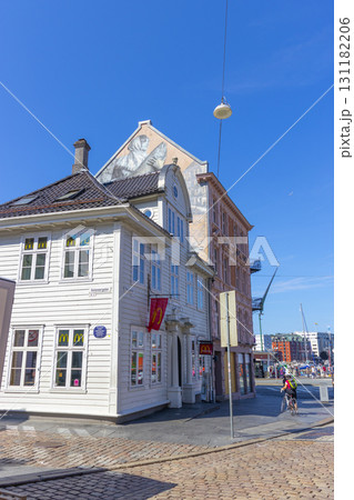 Bergen, Norway - June 11,2022 : Street view in downtown of Bergen in Bergen, Norway on June 11,2022.