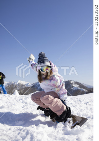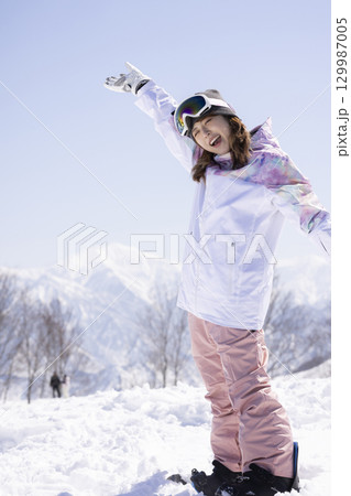 スノーボードを楽しむ女性