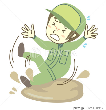 油汚れの上で滑る男性配達員