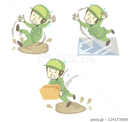 男性配達員の転倒事故などのセット