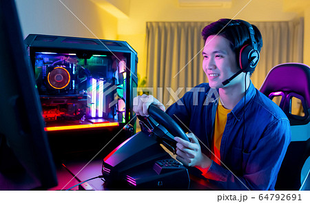cybersport gamer play car racing