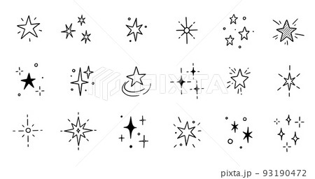 Line star glitter shine of doodle set. Star shine glow, spark glitter, sparkle light. Hand drawn sketch doodle style.