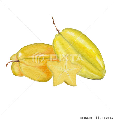Watercolor isolated illustration of star fruit