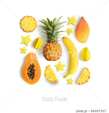 Fresh exotic fruits isolated on white