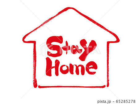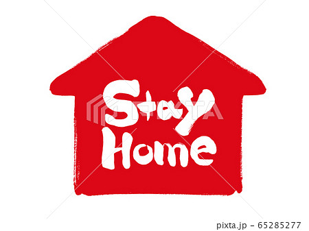 Stay Home、アイコン、stay home、家マーク、家、英語、筆書き、手書き、筆文字、赤、