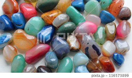 Pattern of glance multi-colored quartz stones closeup top view. Stock photo for stones backgrounds