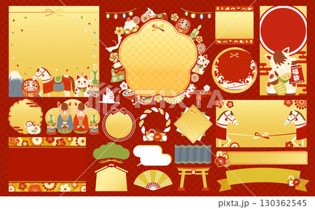 2026年午年の和風モダンなお正月フレームセット_広告や年賀状に使える縁起物や馬のベクター素材集