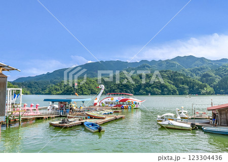晴天の牛久沼水辺公園のコブハクチョウ 茨城