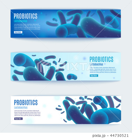 Probiotics Vector Horizontal Blue Web Banners Set