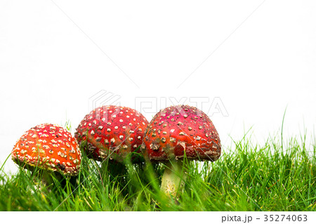 green lawn with fly agaric fly amanita