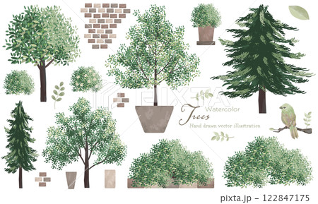 いろんな樹木(緑)の素材セット