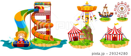 Different rides in theme park