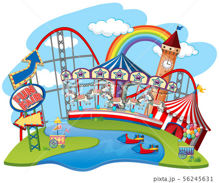 Circus scene with many rides at day time