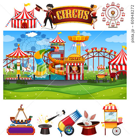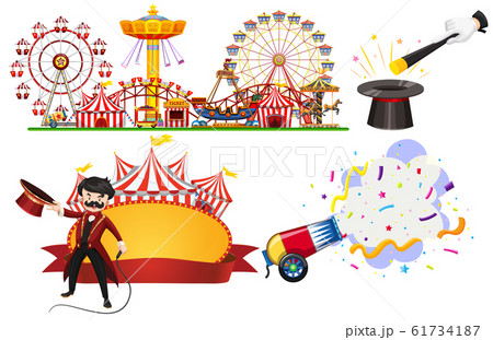 Circus scene with magician and rides