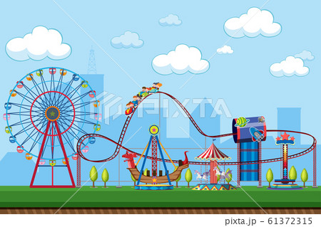 Background scene of funpark with many rides