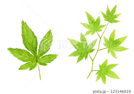 甜茶の葉の水彩イラスト アナログ手描き
