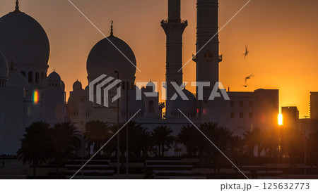 Sheikh Zayed Grand Mosque in Abu Dhabi at sunset timelapse, UAE