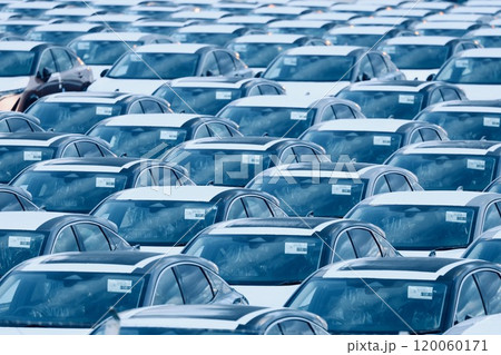 輸出・輸入を待つ自動車(テスラ、電気自動車)