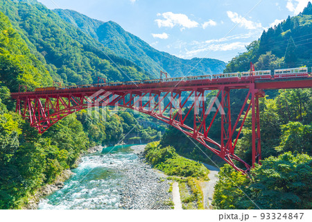 富山県宇奈月温泉 黒部峡谷鉄道 黒部川にかかる新山彦橋