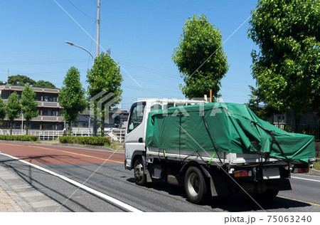 truck going on road with green sheetの画像素材(写真・イラスト) 1ページ目