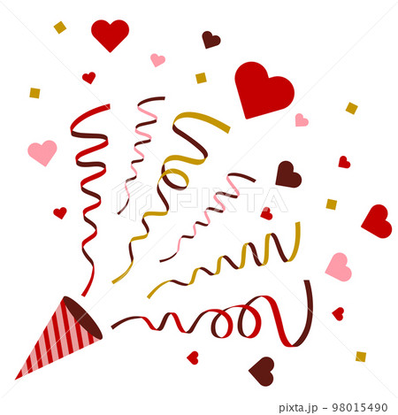 ハートとリボンがはじけるクラッカーのイラストカット バレンタインデー
