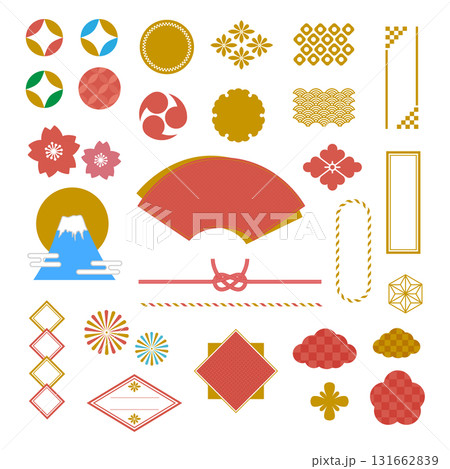 年賀状素材「謹んで新春のお慶びを申し上げます」(はんこ・扇形・蝶結び・筆文字・手書き文字)