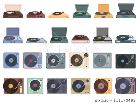 Vinyl player icons set cartoon vector. Turntable music. Record old
