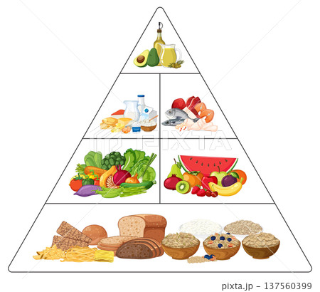 Colorful Food Pyramid Illustration with Healthy Food Groups