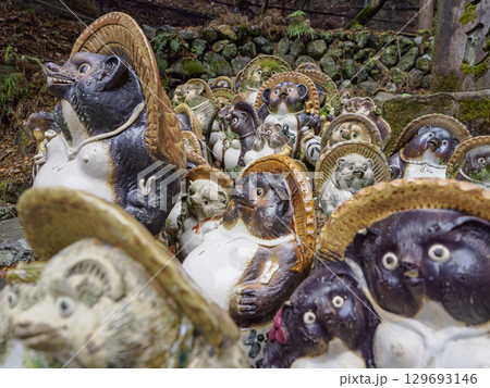 滋賀県甲賀市信楽町の狸の焼き物を撮影