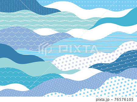 波、海の和柄背景ベクターイラスト アブストラクト 背景 青 水色