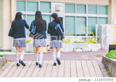 通学する制服姿の女子高生の後ろ姿