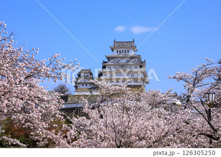 兵庫県姫路市 桜に彩られた春の国宝姫路城天守