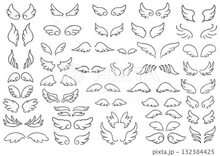 グレーの天使の羽や翼の線画イラスト素材 - シンプルでポップなゆめかわ系の翼のデコレーション