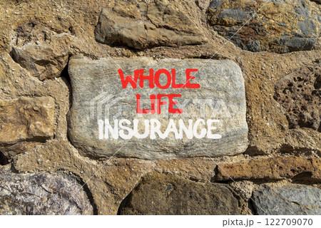 Whole life insurance symbol. Concept words Whole life insurance on beautiful grey stone on stone wall. Beautiful stone wall background. Business whole life insurance concept. Copy space.