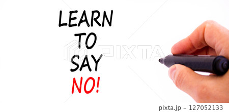 Learn to say no symbol. Concept words phrase Learn to say no on beautiful white paper. Businessman's hand. Beautiful white background. Business psychological Learn to say no concept. Copy space.