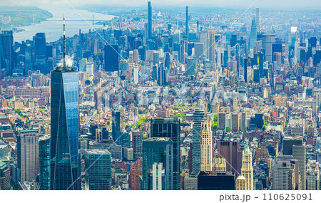 ニューヨークの摩天楼を望む空撮