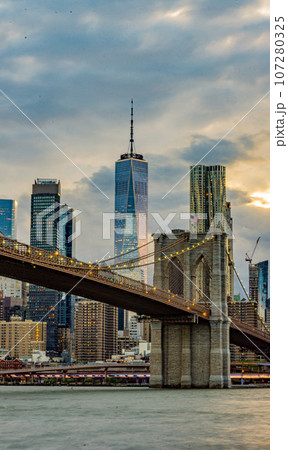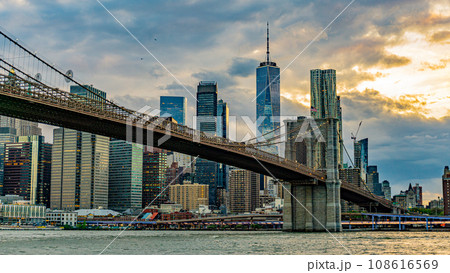 ブルックリンより望むマンハッタンの夕焼け(ニューヨーク)