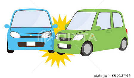自転車に乗って自動車と交通事故に遭う会社員のイラストイメージ