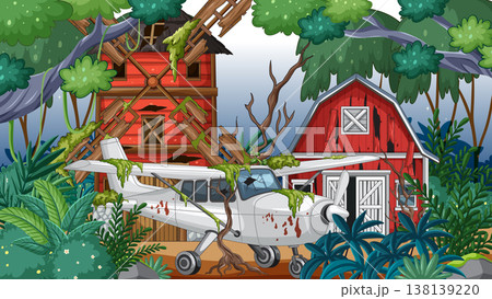 Abandoned Airplane Crash in Overgrown Jungle Farmyard