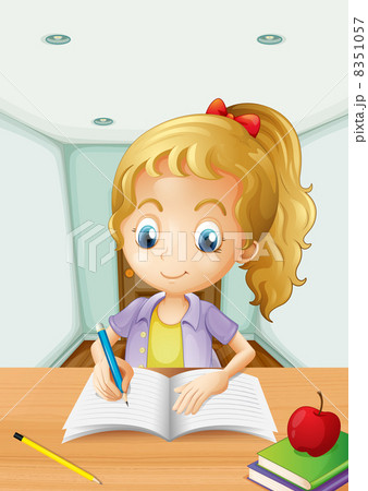 A girl with an apple at the top of a book*** .
